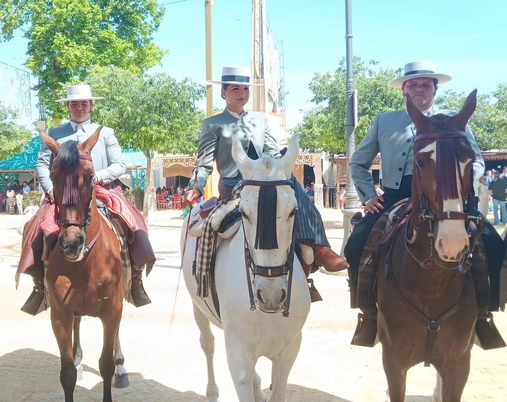 We were too slow to catch it on video, bugger it, but at one point a couple of beautiful grey women on horses … I mean, a couple of women on beautiful grey horses pulled up outside the caseta next door to ours, performed a perfectly executed synchronised pirouette – a full three-sixty, horses and all – then doffed their hats. A few moments later, a waiter delivered each of them a glass of fino in appreciation. They rode away, sipping, and clearly won’t have to pay for a drink for as long as the horses don’t get dizzy.
